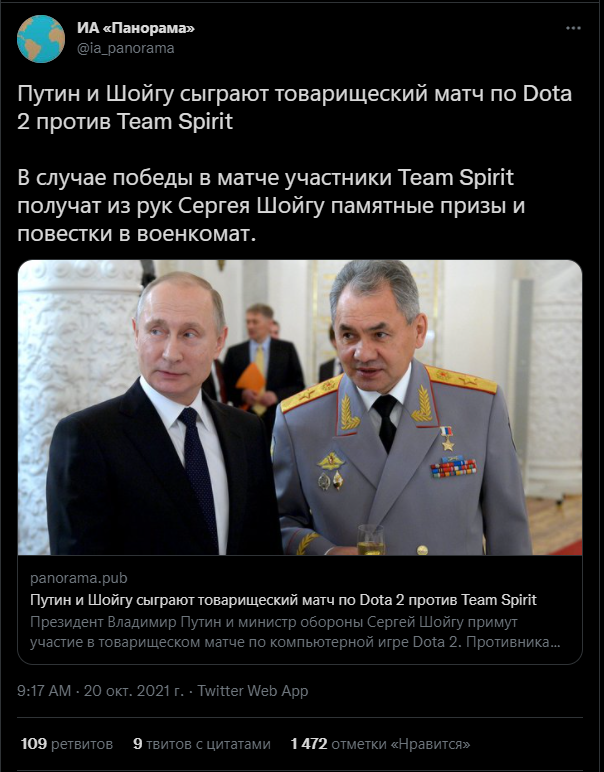 Воскресенье а. Некоторые игры, добавленные в список желаемого в Steam во время пребывания на предыдущей работе (и с целью играть в них на той работе), на новой работе уже не хочется даже пробовать, потому что на новой работе надо РАБОТАТЬ! :о) б. Отечественные киберспортсмены одержали победу в Чемпионате мира по игре DOKA DOTA2, порадовав ценителей и взволновав рунет. [КАРТИНКИ и слова]