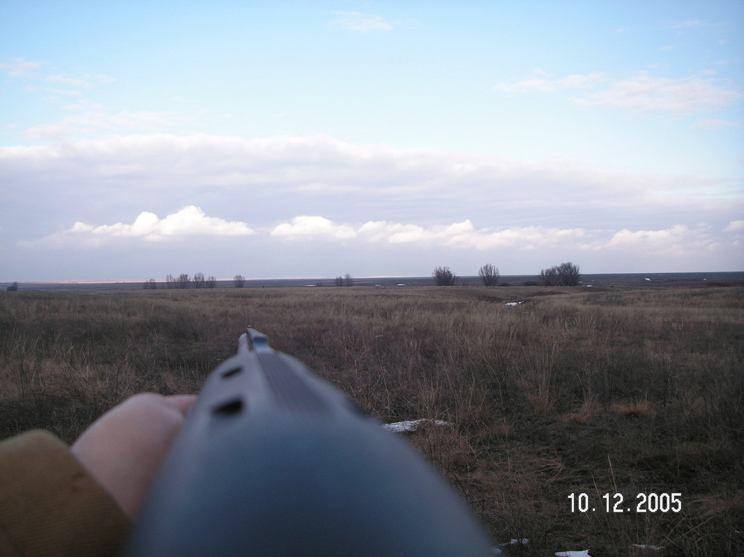 Первая и едва ли не единственная фоточка такого рода, с оружием в руках и видом со стороны стрелка. В том мероприятии, как во всех других охотах, действовал в роли фотографа.