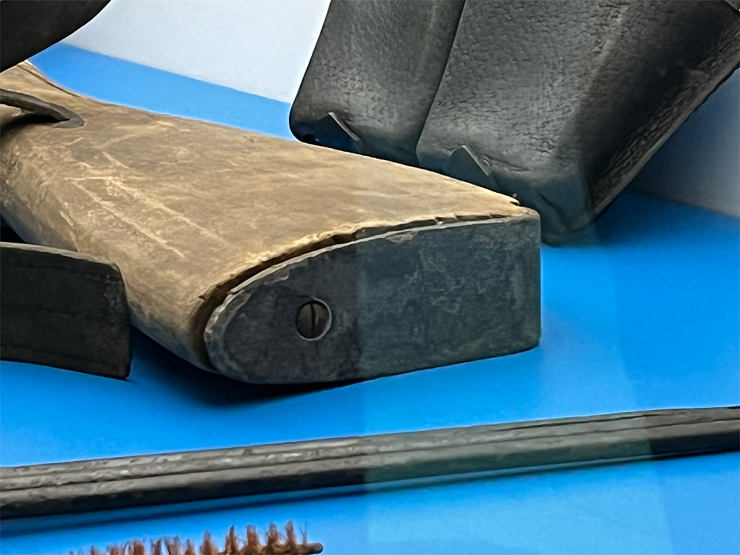 Цифровое увеличение торца ложи, из-за разбухания древесины в воде вышедшего за пределы металлического затыльника, на фотографии получилось ниощинь: