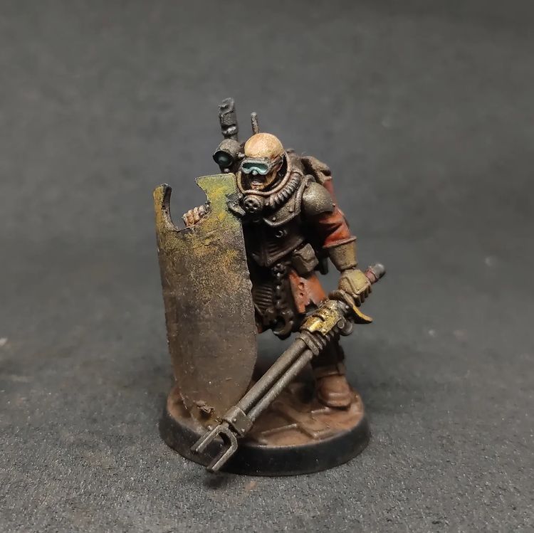 Боец Генокрадов со стильной электропалкой и древним артефактным хаоситским щитом, сохранившимся из тех давних времён, когда Император лично вёл в бой армии Ымперии, а не овощил на Золотом троне, спустя овер