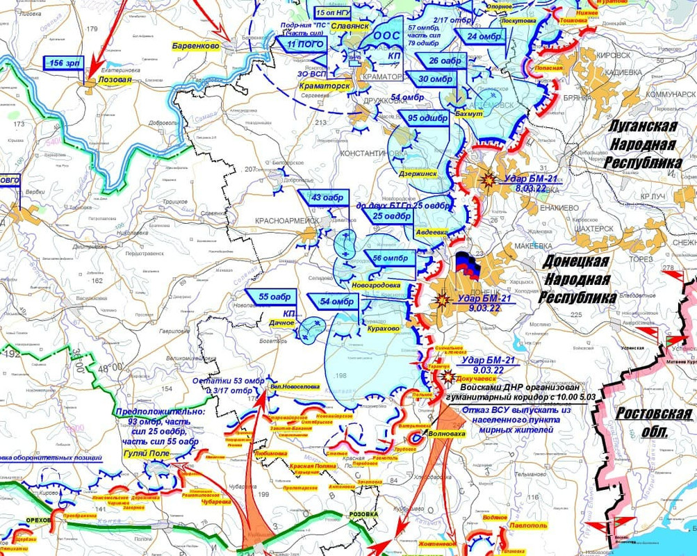 Обстановка на Донбасском фронте на 12:00 10.03.2022