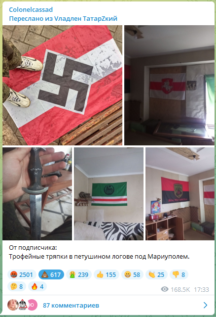 Бойцы Новороссии осматривают сувенирную продукцию злодеев