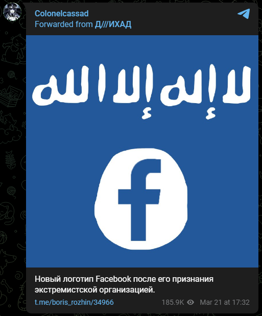 Так это што теперь, за публичную демонстрацию символов этих отмороженных соцсетей теперь может грозить до 15 суток ареста? :-))))