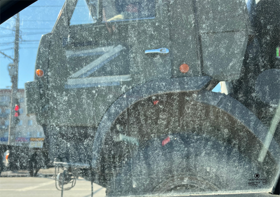 Впервые увидел военную технику с маркировкой Z. Оба тентованные грузовики. Сначала это был Урал, а потом -- Камаз.