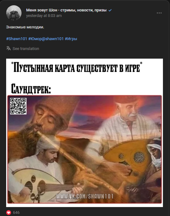 ВКонтактик подогнал тему с игровой восточно-пустынной музыкой. Местами забавно.